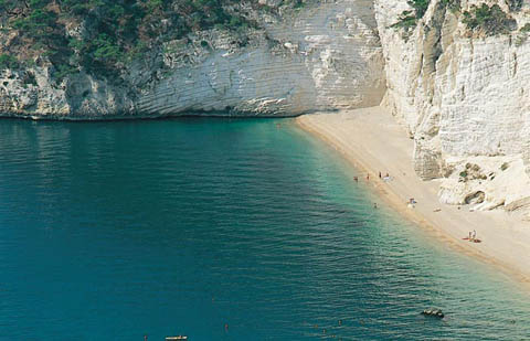 Mirando hacia el mar, los Balcanes y Grecia, Gargano vive fuertemente el espíritu del Mediterráneo. Alrededor de 200 kilómetros de costa que alternan con acantilados, calas de dunas, rocas y acantilados, matorrales y paredes de piedra caliza. Estamos en busca de sus playas más bellas, que a menudo se puede llegar a partir de la Ruta Estatal 89 a las lagunas costeras de Varano y Lesina llegar a Manfredonia, o directamente desde el mar, tal vez la forma más fascinante que buscar el lugar adecuado para vivir en plena belleza de la península de Apulia.